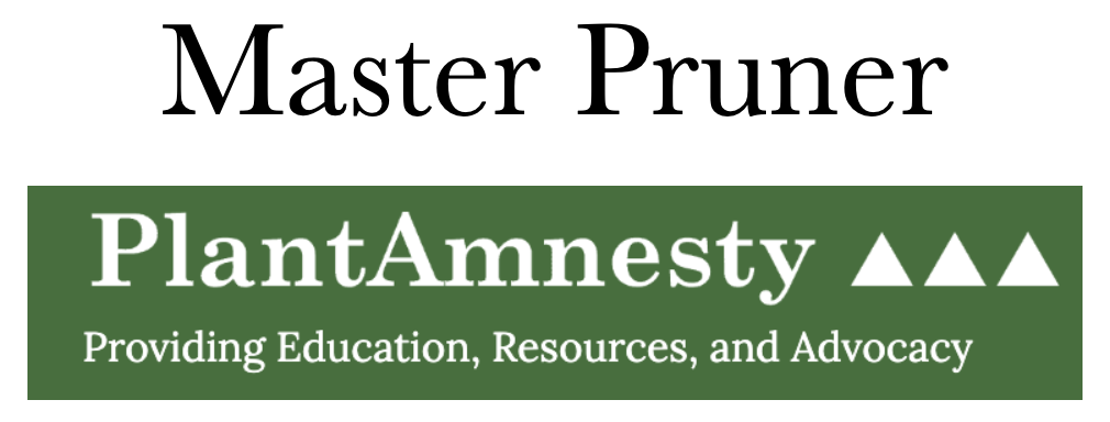 I am a certified Master Pruner through Plant Amnesty, an organization dedicated to promoting responsible pruning practices and plant health.